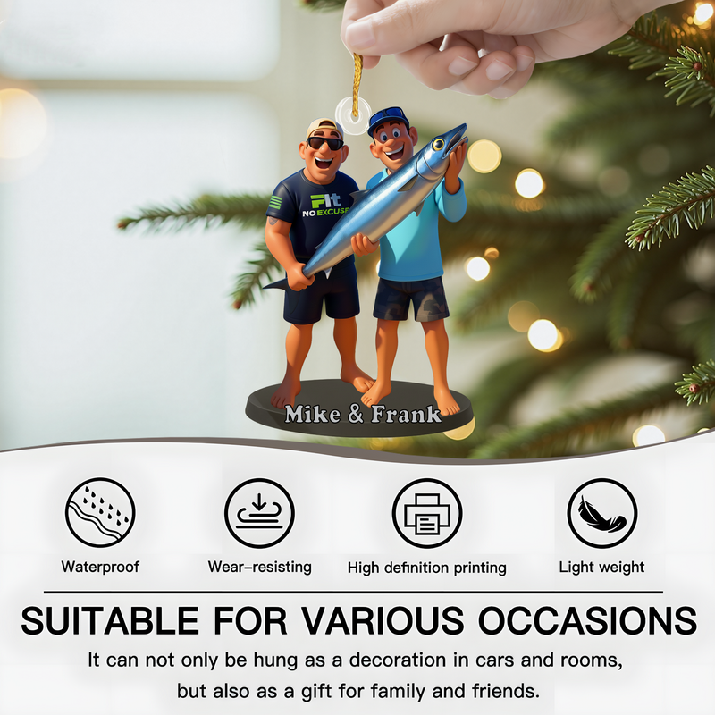 This custom acrylic ornament is the perfect keepsake for fishing lovers. Upload your photo and our artists will hand-design a unique ornament that captures your best fishing moment. Great as a Christmas tree decoration, a birthday surprise, or a special gift for friends and family who love fishing.