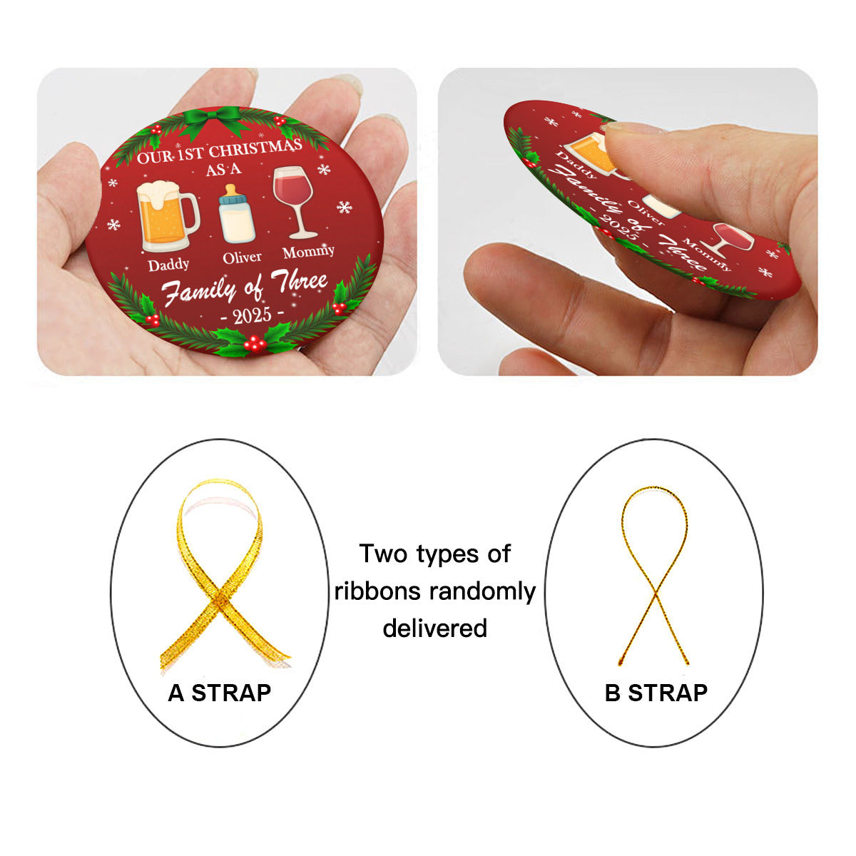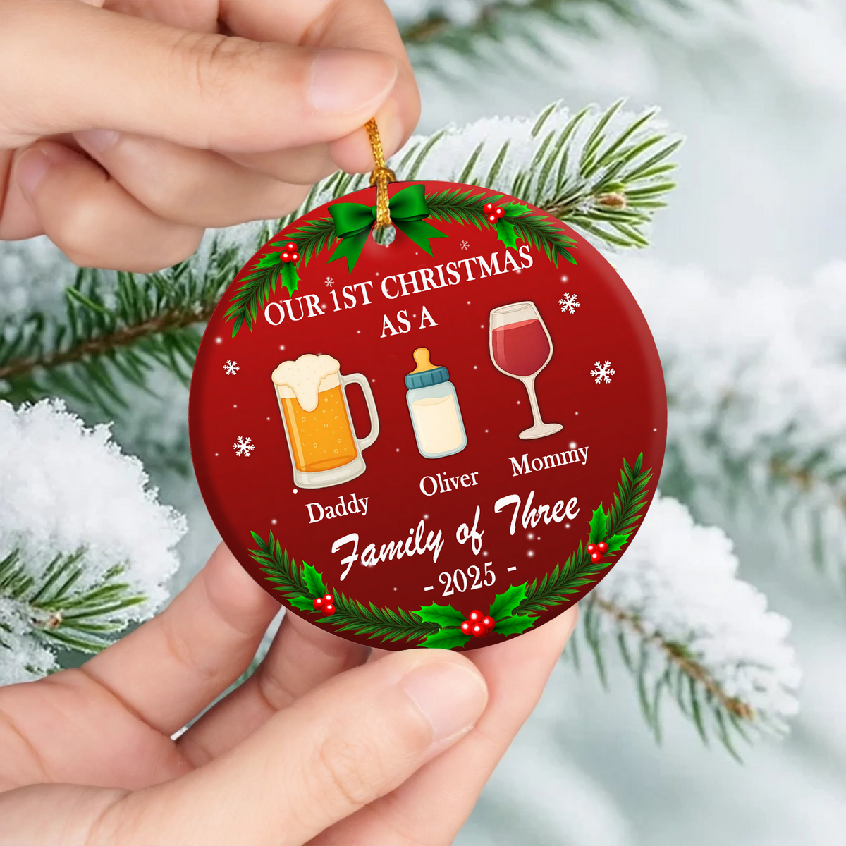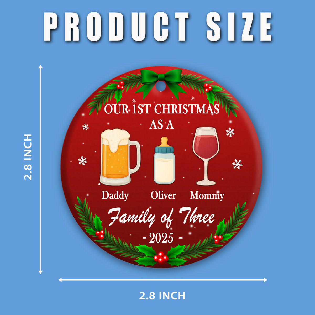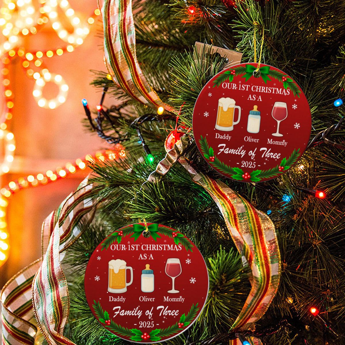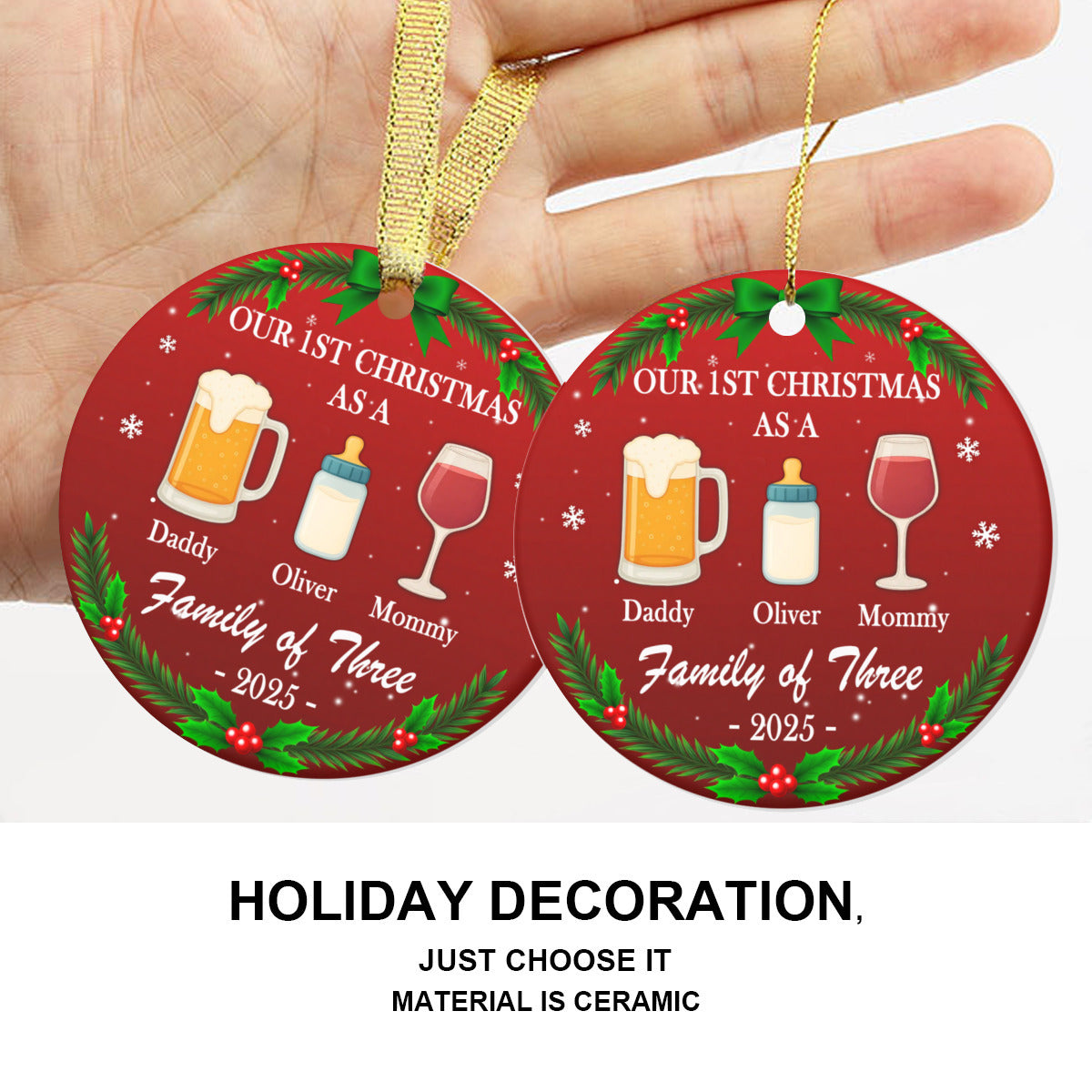 Personalized Ceramic Ornament - Custom Christmas Birthday Gift For Mom, Dad, Baby - Our Family’s First Christmas Together